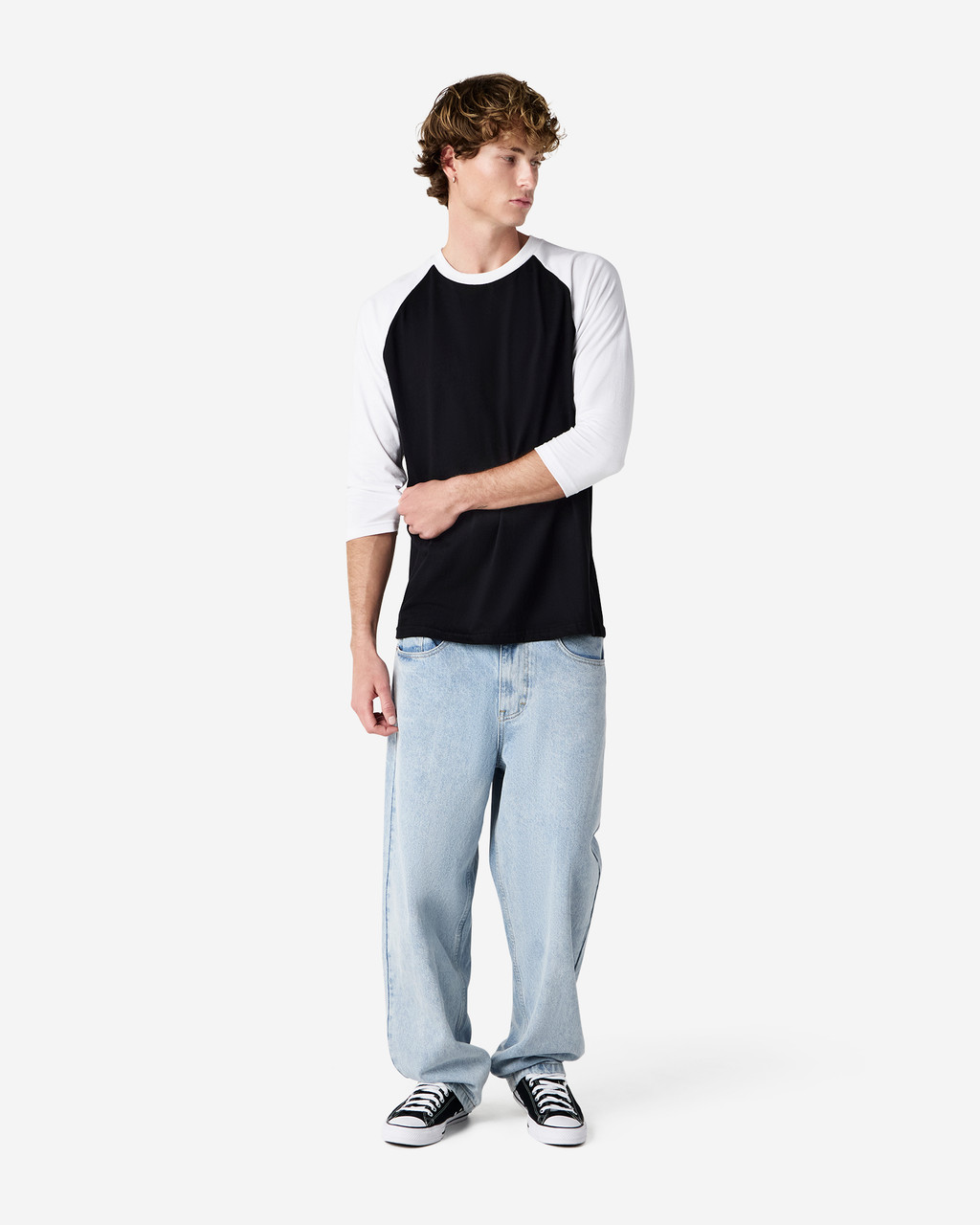 - Contrasting 3/4 raglan sleeves